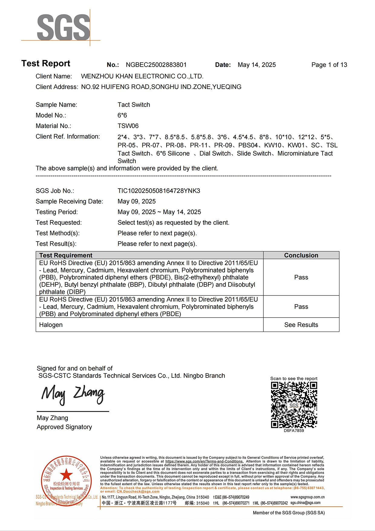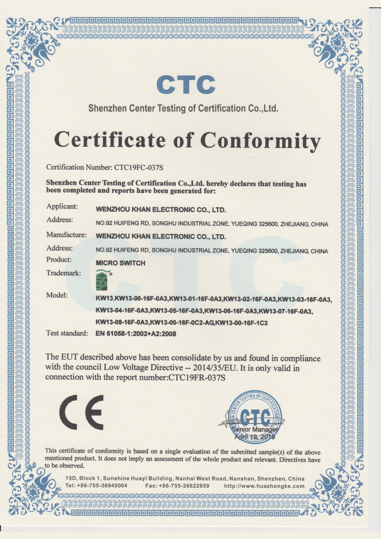 Address:NO.92 HUIFENG ROAD, SONGHU IND. ZONE, YUEQING 325600, ZHEJIANG, CHINA